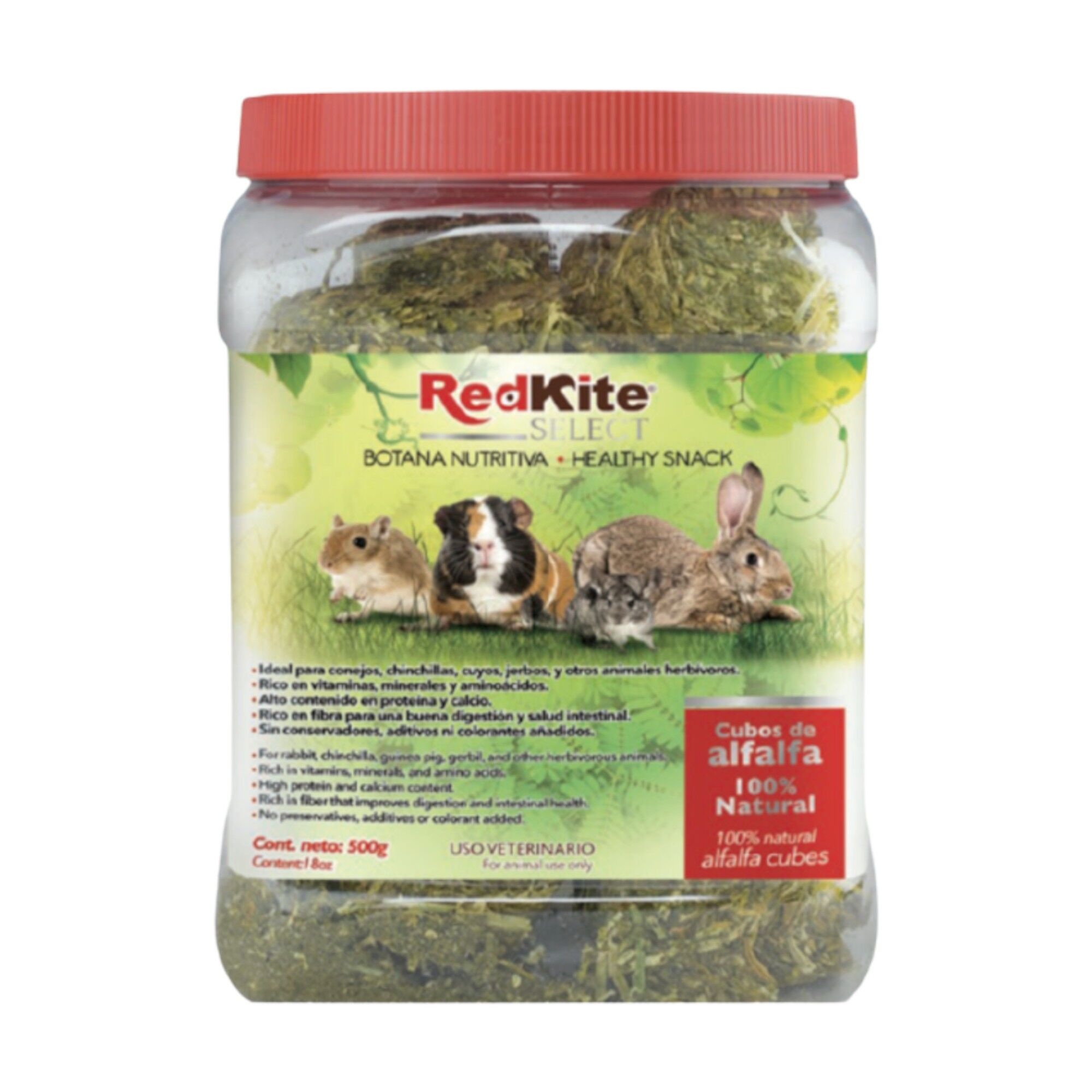 Los cubos de alfalfa Red Kite son un delicioso y saludable complemento alimenticio para pequeños mamíferos como conejos, cobayas y chinchillas. Estos cubos están hechos de alfalfa de alta calidad, rica en fibra y nutrientes esenciales que favorecen la digestión y ayudan al desgaste natural de los dientes. Ideales para mantener a tus mascotas activas y felices, son una excelente opción para agregar variedad y beneficios a su dieta diaria.