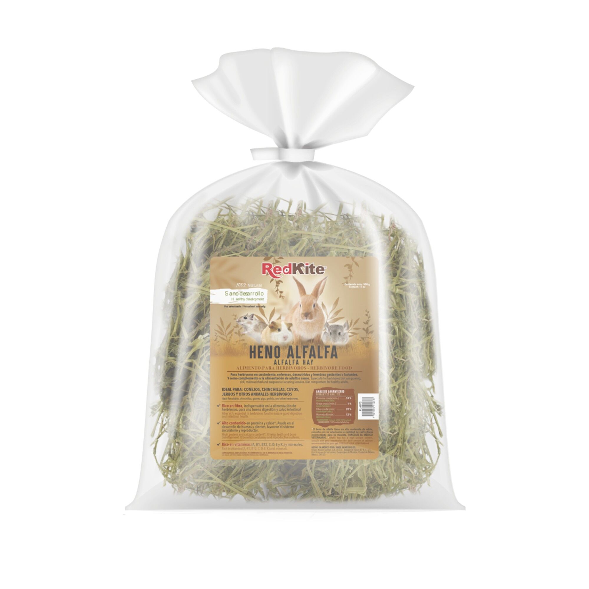 El heno para pequeños mamíferos Red Kite es una opción natural y nutritiva para la dieta de conejos, cobayas, chinchillas y otros roedores. Rico en fibra y cuidadosamente seleccionado, este heno favorece una buena digestión y contribuye al desgaste natural de los dientes, ayudando a mantener la salud dental de tus mascotas. Es un alimento esencial para mantenerlos activos y saludables, proporcionándoles el sabor y la textura que tanto disfrutan.