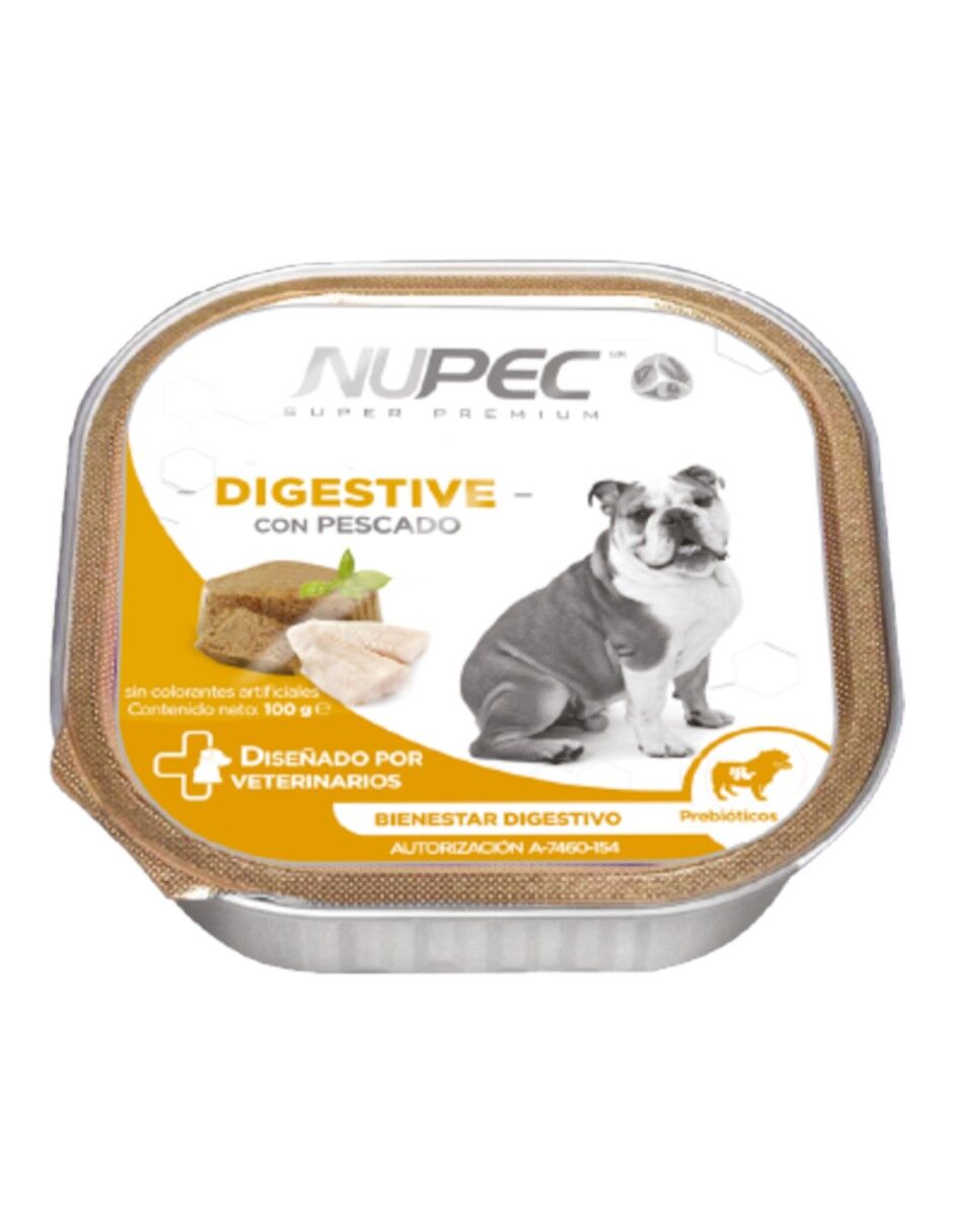 Nupec Digestive Wet es una opción ideal para perros con sensibilidades digestivas, proporcionando una alimentación completa y equilibrada que apoya la salud digestiva y el bienestar general de la mascota.